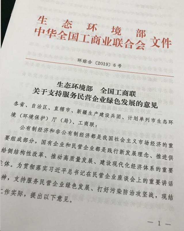 今天,生態(tài)環(huán)境部和全國工商聯(lián)簽署了“關于共同推進民營企業(yè)綠色發(fā)展 打好污染防治攻堅戰(zhàn)”的合作協(xié)議,聯(lián)合出臺《關于支持服務民營企業(yè)綠色發(fā)展的意見》,將通過健全市場準入機制、完善環(huán)境法規(guī)標準、規(guī)范環(huán)境執(zhí)法行為、強化科技支持服務、完善環(huán)境經濟政策措施,支持民營企業(yè)提高綠色發(fā)展水平、營造公平競爭市場環(huán)境。